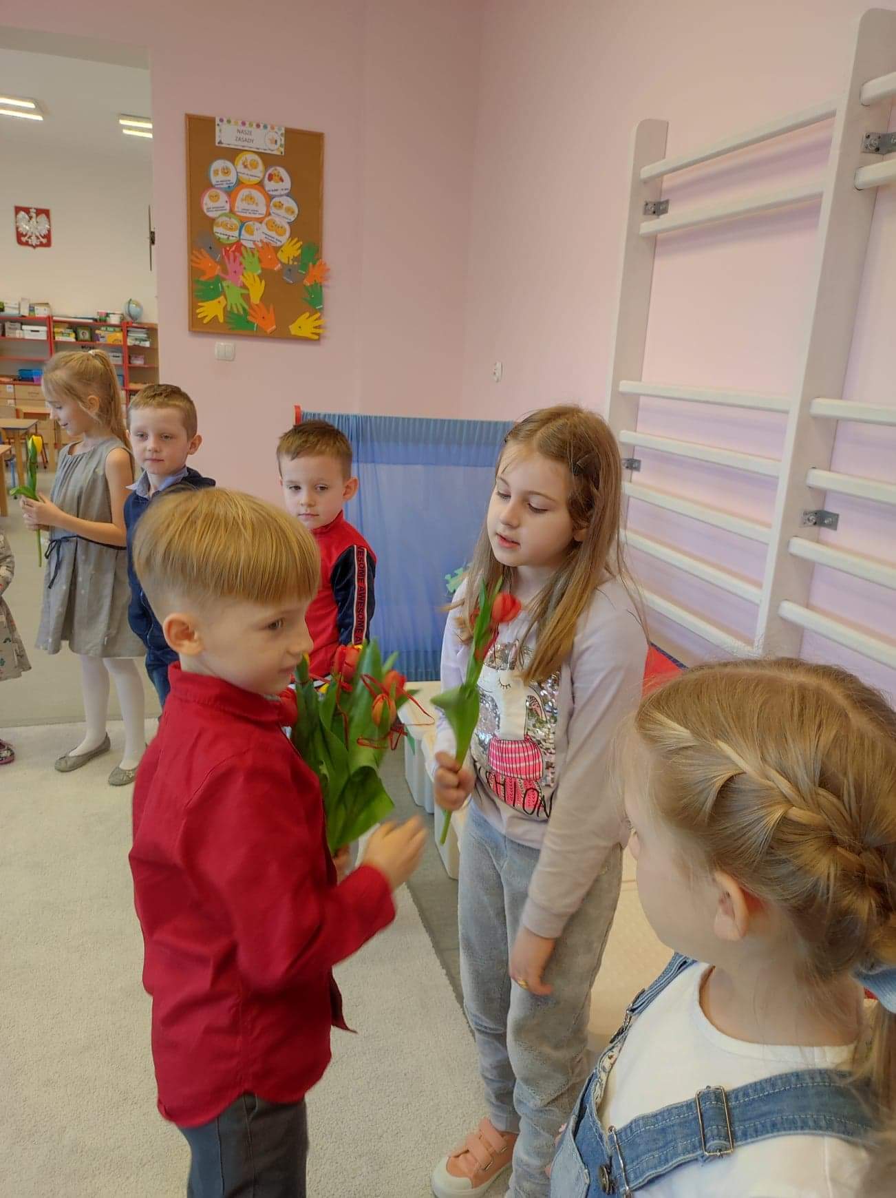 Święto Kobiet, które corocznie obchodzimy w naszym przedszkolu, to doskonały sposób do kształtowania u dzieci nawyku obdarowywania upominkami swoich najbliższych. W tym szczególnym dniu wszyscy chłopcy składali życzenia dziewczynkom i swoim paniom. Nie zabrakło niespodzianek i serdeczności. Mali Panowie tego dnia byli niezwykle czarujący. Wszystkie panie i dziewczynki dziękują chłopcom za piękne życzenia, kwiaty i promienny uśmiech.