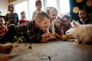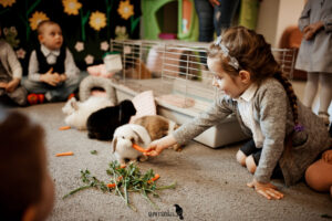 Dnia 27 marca w naszym przedszkolu odbyło się spotkanie z uroczymi króliczkami. Pani Paulina, która zajmuje się hodowlą królików miniaturek przyjechała do nas z milusińskimi zwierzaczkami. Dowiedzieliśmy się wielu ciekawych informacji na ich temat. Mogliśmy nakarmić króliczki jak również wziąć je na ręce. Pani Martyna Gawron wykonała nam piękne zdjęcia. Dziękujemy bardzo. Po woli czuć już u nas Święta Wielkanocne.